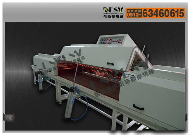 機臺結(jié)構(gòu)概述:本機內(nèi)部框架結(jié)構(gòu),局部加強,不易變形,采用鐵氟龍傳送網(wǎng)帶,比較平整,上料段400 mm,烘干段紅外線燈管加熱:總6500mm(烘干段均分為3組:(2500+2000mm+2000mm,可獨立控溫工作),出料端100mm。烘干段上蓋加裝氣缸式自動頂升裝置。加裝可撐式頂桿裝置,雙重保證安全,便于定期維護。紅外線燈管安裝在烘箱頂部內(nèi),同時加裝上下可調(diào)節(jié)裝置,進出料口采用可調(diào)式隔熱板,可上下自由調(diào)節(jié)。
